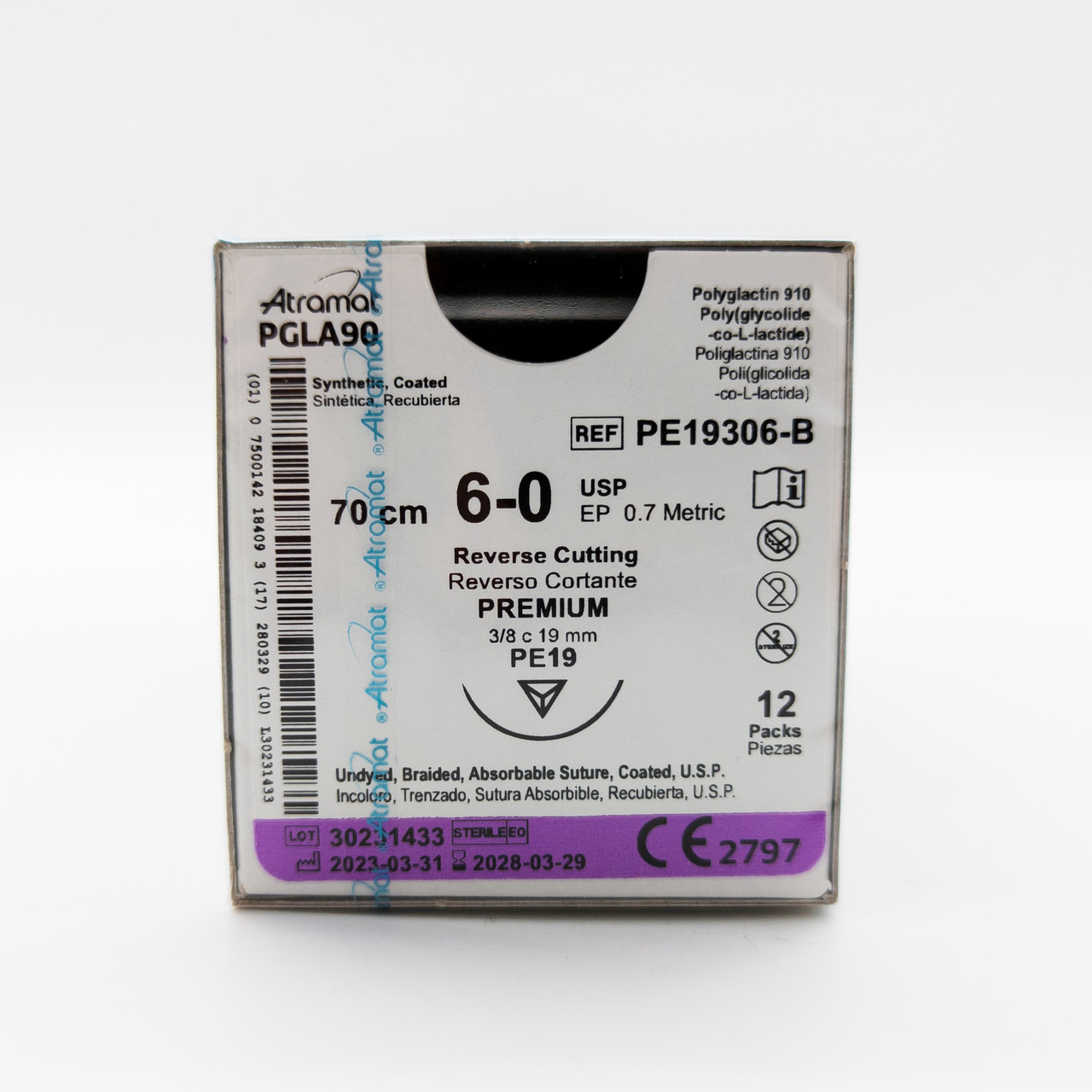 Хірургічний шовний матеріал Atramat, поліглактин 910 Полі (гліколід-co-L-лактид), розсмоктується, USP 6-0, EP 0.7.